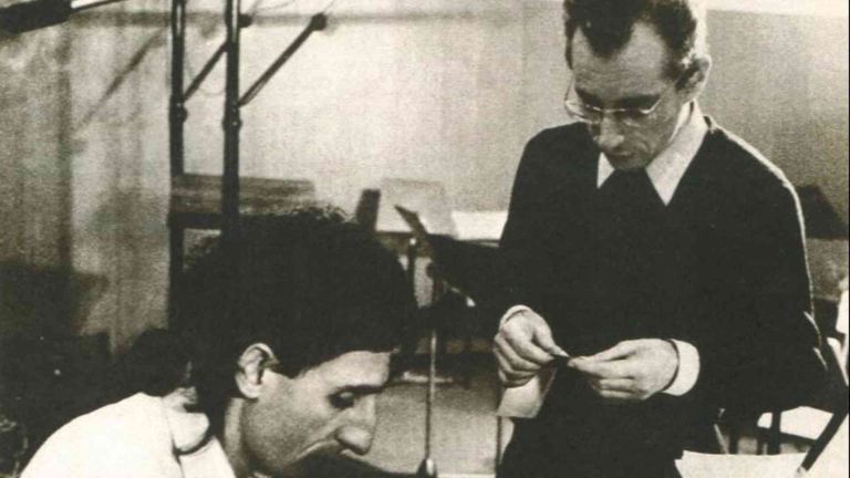 Franco Battiato and Antonio Ballista during the recording sessions for the Battiato LP in 1977